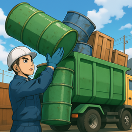 ドラム缶や一斗缶またはフレコンバッグなどの全体写真